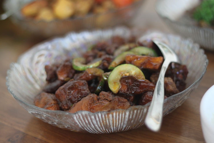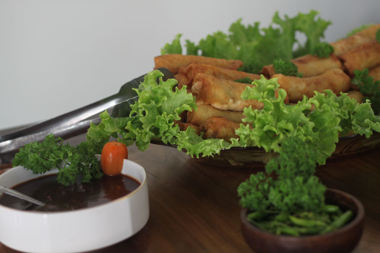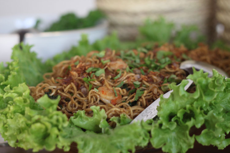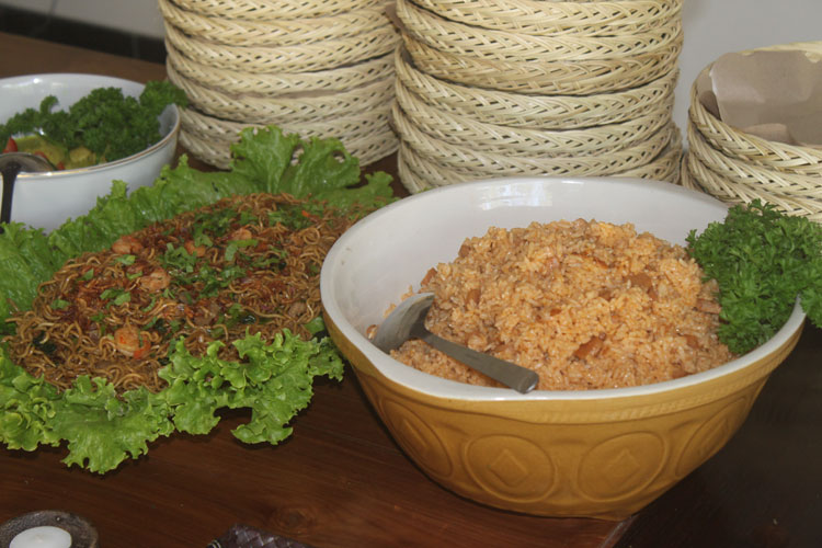 Menu-menu untuk melengkapi pesta itu adalah nasi dan mie goreng, sapi lada hitam, kari ayam India, lumpia sayur dan ayam goreng kering.