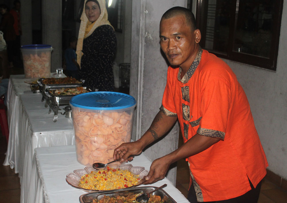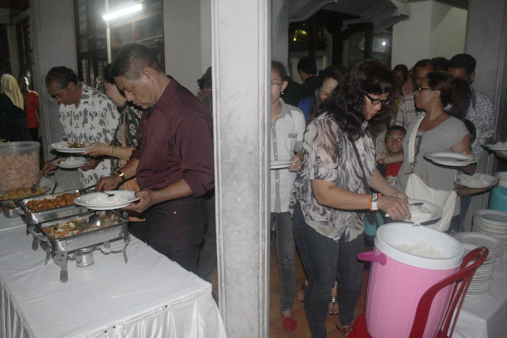 Acara demi acara telah terlewati dan pukul 21.00 WITA para tamu dari IKM Bali segera dipersilahkan santap malam. Team Warung Kita yang berjumlah 6 orang segera sigap dengan segala kondisi yang terjadi. Ada yang mempersilahkan dan menunjukkan tempat hidangan agar antrian tidak terlalu panjang. Ada yang bolak balik untuk mengisi sajian yang hampir habis, dan ada pula yang segera ambil piring-piring tamu yang selesai makan. Tujuannya adalah untuk menciptakan arena pertemuan yang bersih dan bisa digunakan untuk acara selanjutnya.