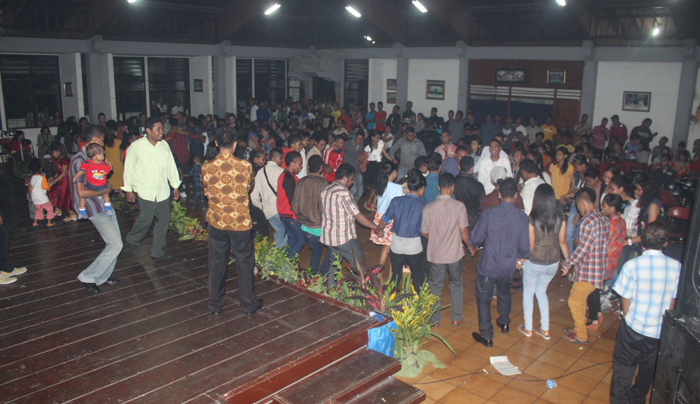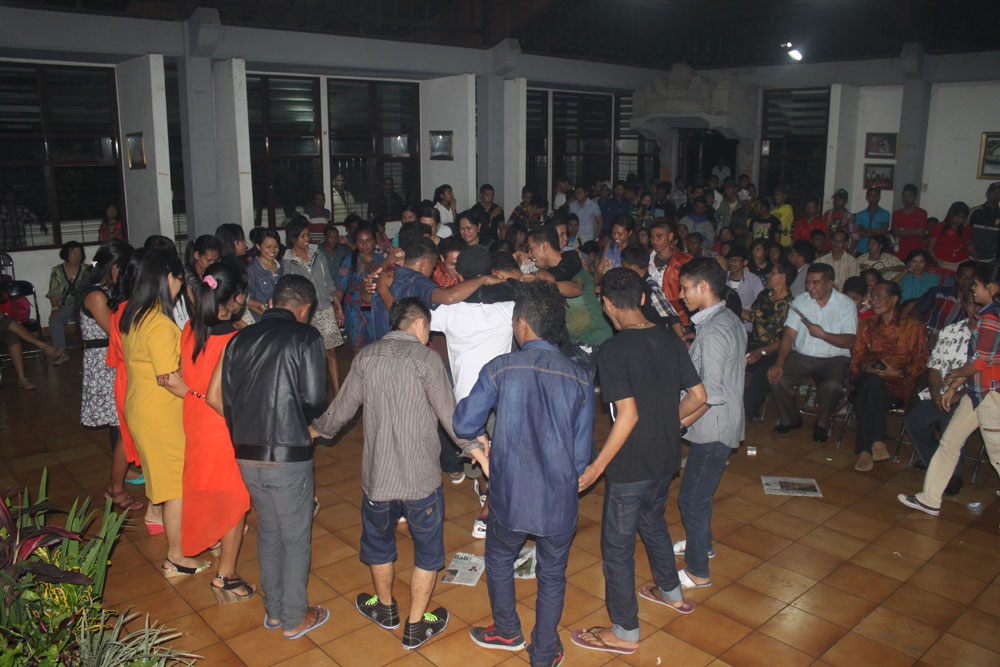 Setelah acara santap malam, pertemuan perayaan Natal dan Tahun Baru 2014 ini berlanjut hinggal pukul 01.00 WITA. Mereka bergembira dengan bernyanyi dan berdansa. Bertemu sua dengan para sahabat dan keluarga. Peristiwa yang menghangatkan jiwa.